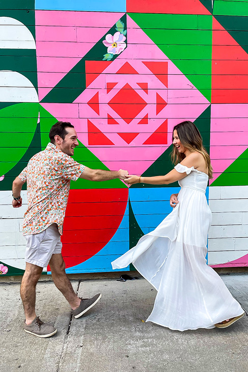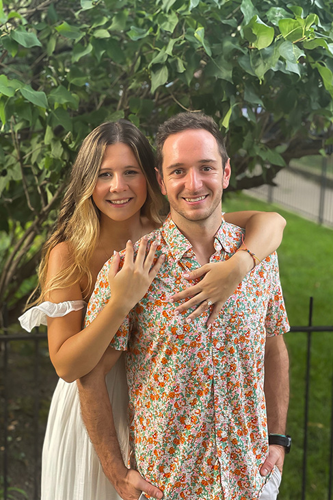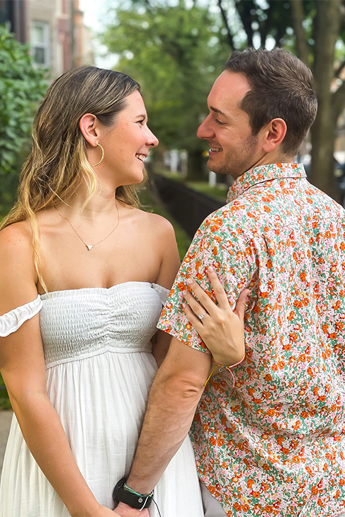 After a couple of years of dating, and in the midst of the mess of 2020, Emily and Turner took a quick trip to Cocoa Beach, FL for a weekend away. Turner proposed on the beach the morning after they arrived - he had planned with a family friend to help set up a blanket, champagne glasses, chilled champagne and flowers on the beach.