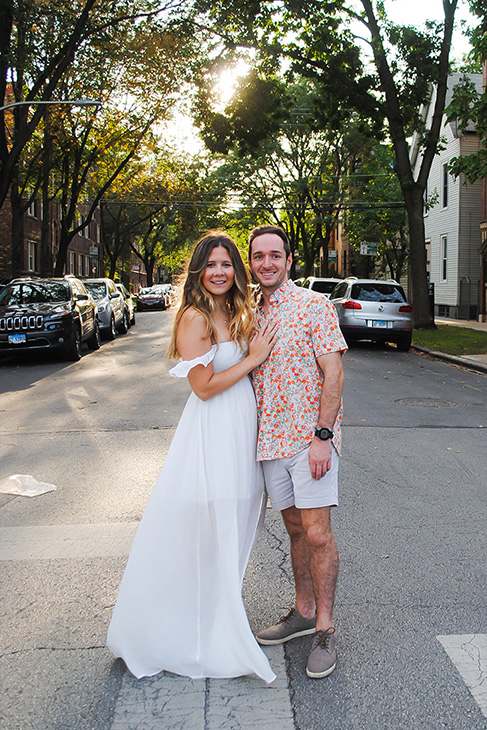Our suggested dress code is "cocktail attire". Semi-formal wear like a cocktail dress or formal jumpsuit for ladies, a suit or blazer with or without a tie for gentlemen. Our wedding will have a tropical/summer vibe, so feel free to wear bright colors or floral prints. Both the ceremony and reception will be indoors with air conditioning. Chicago's average high temperature in June is 81° with an average low of 63°.