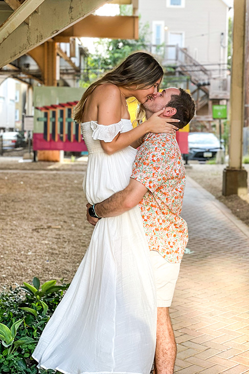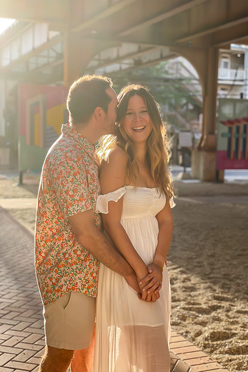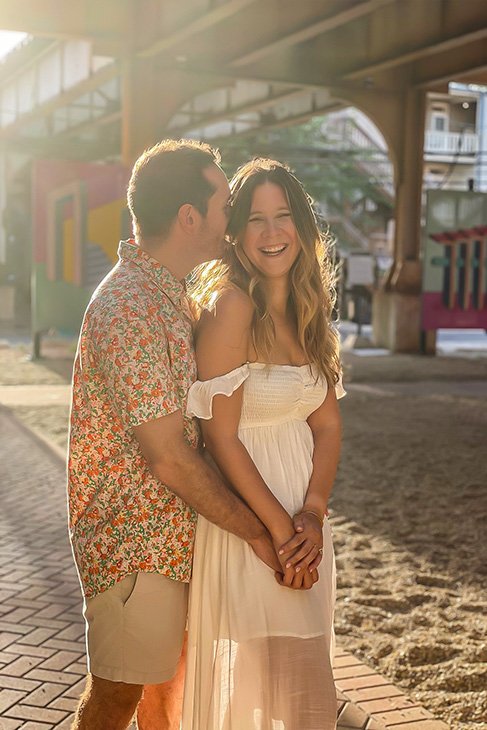 After a couple of years of dating, and in the midst of the mess of 2020, Emily and Turner took a quick trip to Cocoa Beach, FL for a weekend away. Turner proposed on the beach the morning after they arrived - he had planned with a family friend to help set up a blanket, champagne glasses, chilled champagne and flowers on the beach.